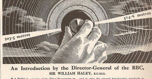 One of my favourite walks is down by the canal in Ansty. You have two choices from the Social Club car-park. Turn right to see sheep, boats, cart-horses. Turn left to go under the motorway bridge and see race-horses, gorgeous elegant things, who even at a distance seem to look at you with a faintly repulsed aloofness. Was going under the bridge the other day and saw a bit of graffiti that sunk the heart. ‘Defund The BBC’. A walk in Warwickshire instantly became doom-strolling, because in the past five years anti-BBC sentiment - which has always been with us - has accreted an extra tincture of bitterness and rage-inducing stupidity for me. Perhaps because the BBC, and in particular my favourite BBC network, the daily miracle that is Radio 3, have come to mean an awful lot to me. To the point where I want to defend it, protect it. To the point where I can’t imagine life without Radio 3.